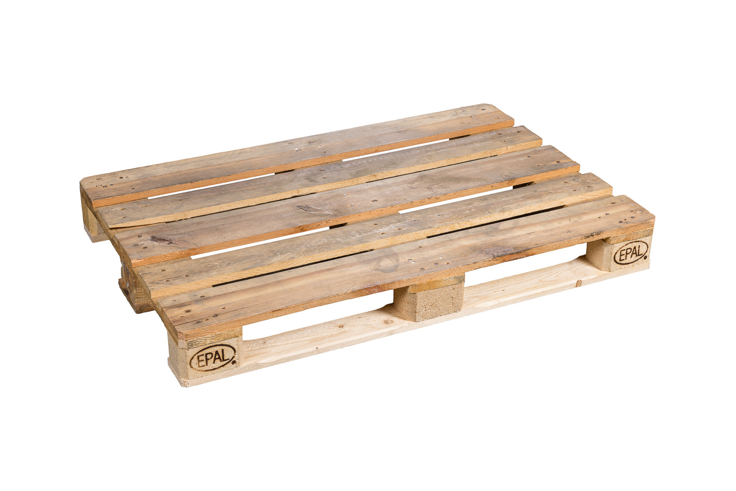 Repaired Euro pallets are also considered used pallets, provided they are restored in an EPAL-licensed repair workshop. These repairs are marked with a special nail in the center block, ensuring traceability and compliance with international standards.